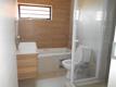 The unit is a single bathroom with a shower and a spacious main bedroom leading onto a private balcony.